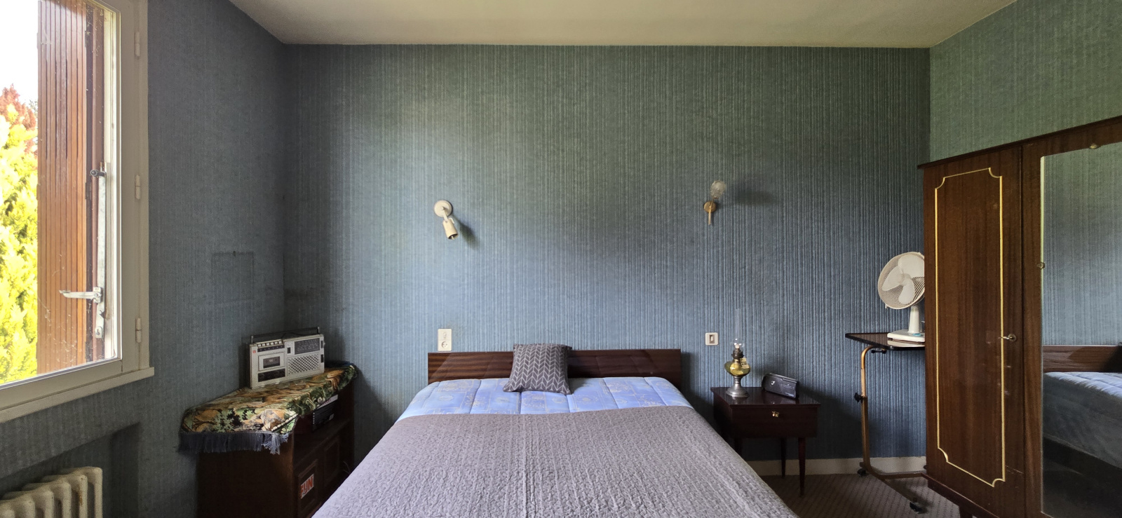 Simple vitrage et volets battants bois.